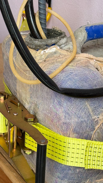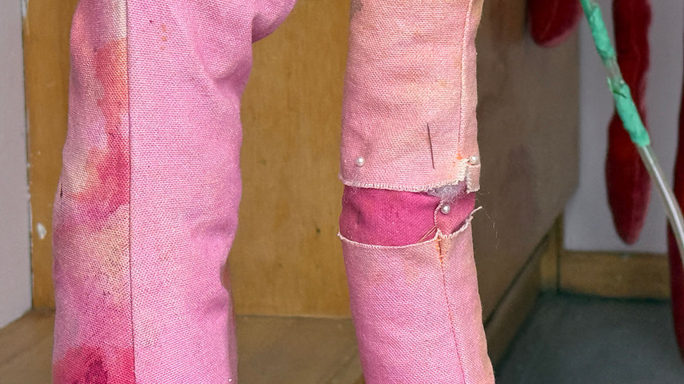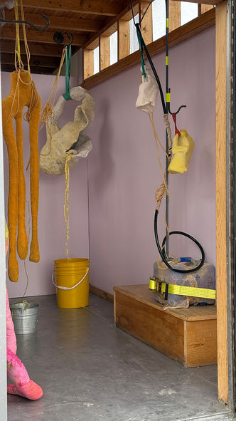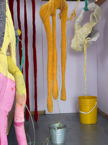Sculptures often reminiscent of the body, plant matter or sometimes a hybridity of beings. She considers where boundaries are blurred within and around the edges of things. The inner composition of the body is in constant conversation and reconfiguration with the surrounding environment and other beings. Through bundling and repurposing materials, she explores the intermingling of self with more-than-self as a framework for considering coexistence and reciprocity. Bodies and landscape all parts of a teaming, caressing, churning, absorbing, expelling tumble.
